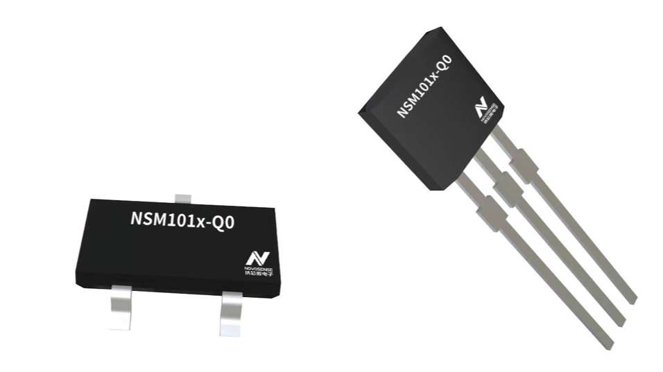 NSM1013-Q0是3线固定灵敏度的锁存型霍尔开关,一种基于平面霍尔效应的汽车级磁传感器,可在-40°C至150°C的环境温度范围内支持高精度的非接触式数字位置测量。
